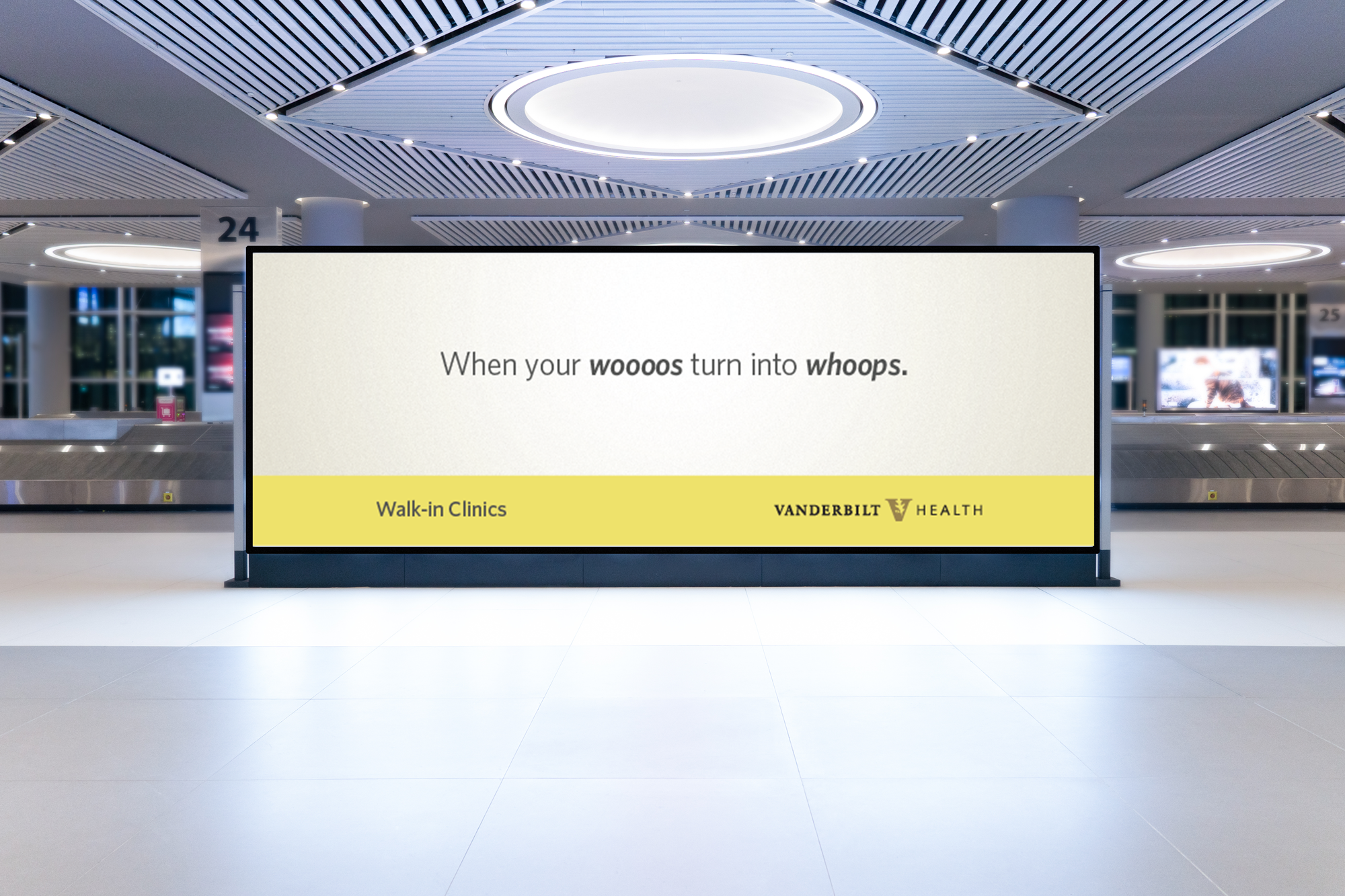 Vanderbilt Health had multiple service lines and one brand partnership they wanted to promote all at once. And they wanted to do it at Nashville’s international airport, BNA. How do you find the thread that links the creative with the media placement, while resonating with a diverse audience? Simple. You treat the work like a tourism campaign.